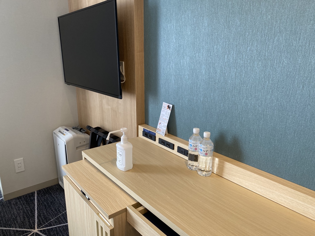 クレンジング、化粧水、乳液、のアメニティがフロントで必要なだけもらえる