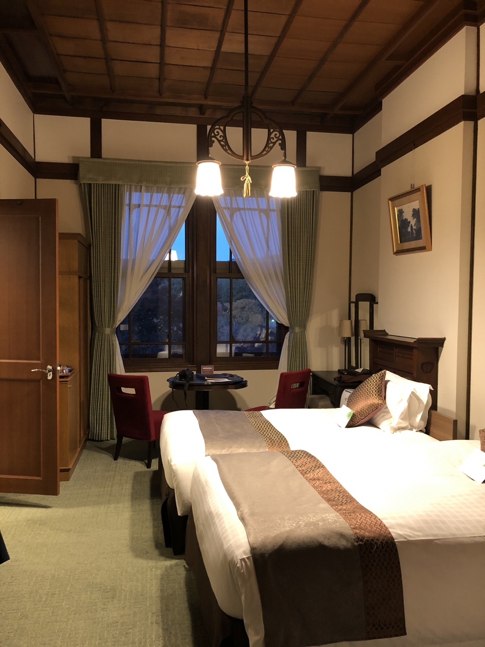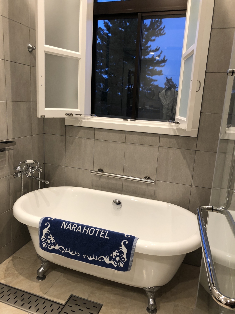 関西の迎賓館とも言われる奈良ホテル、本館は辰野金吾設計。外は和風、室内は洋風。レストランもあり結構人が多い。バスマットも可愛いしアメニティも充実。さすがのクラシックホテル関西代表という感じ。いろいろなモチーフがあって撮影が楽しい。