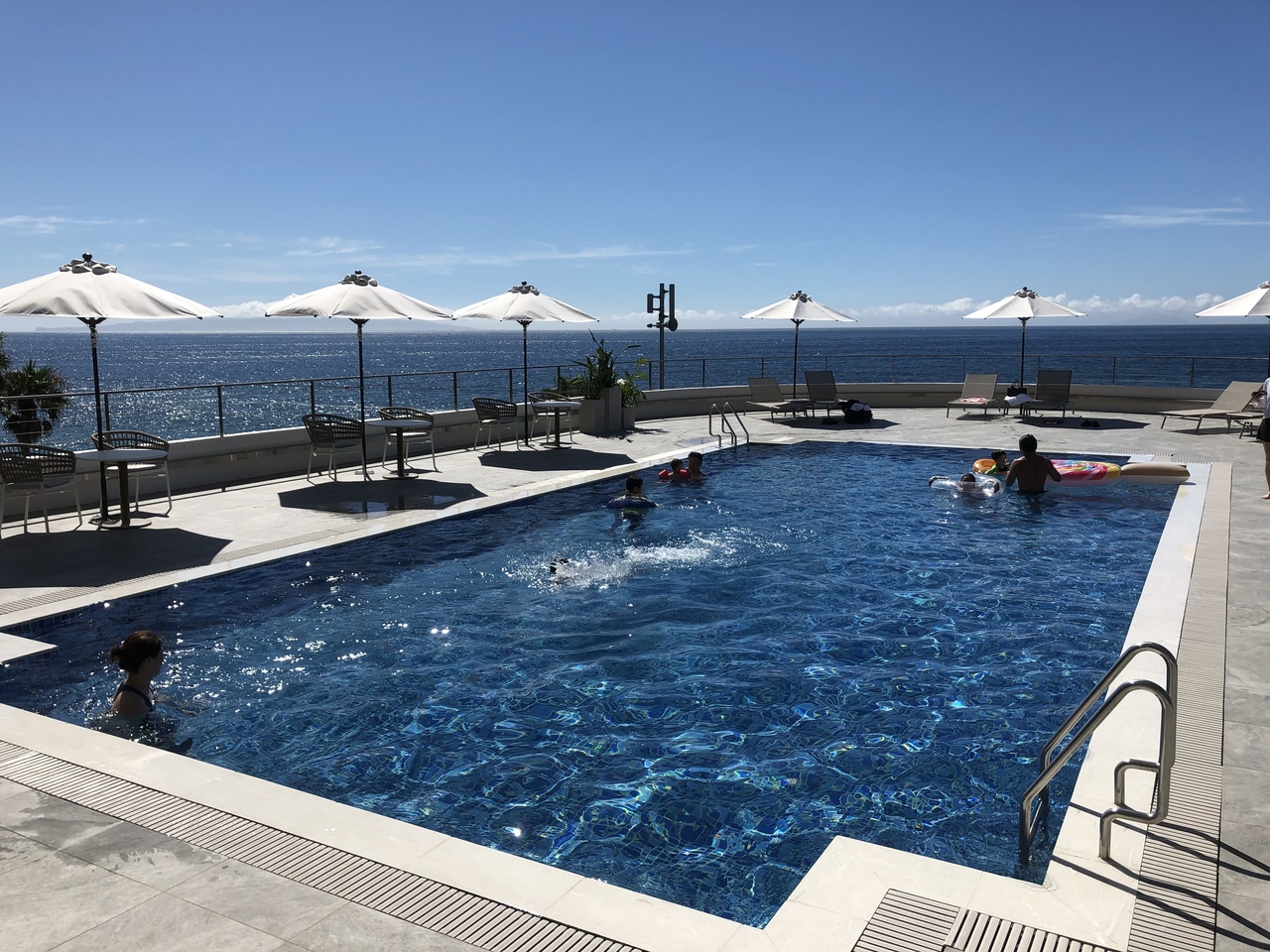 まず立地が素晴らしい。全室オーシャンビュー、ワイキキを思わせる場所でした。プールが魅力的です。夕食も朝食も伊豆ならではの海鮮が多くて大満足でした。熱川温泉、あまり馴染みはなかったのですがビーチも近くて良いところです。