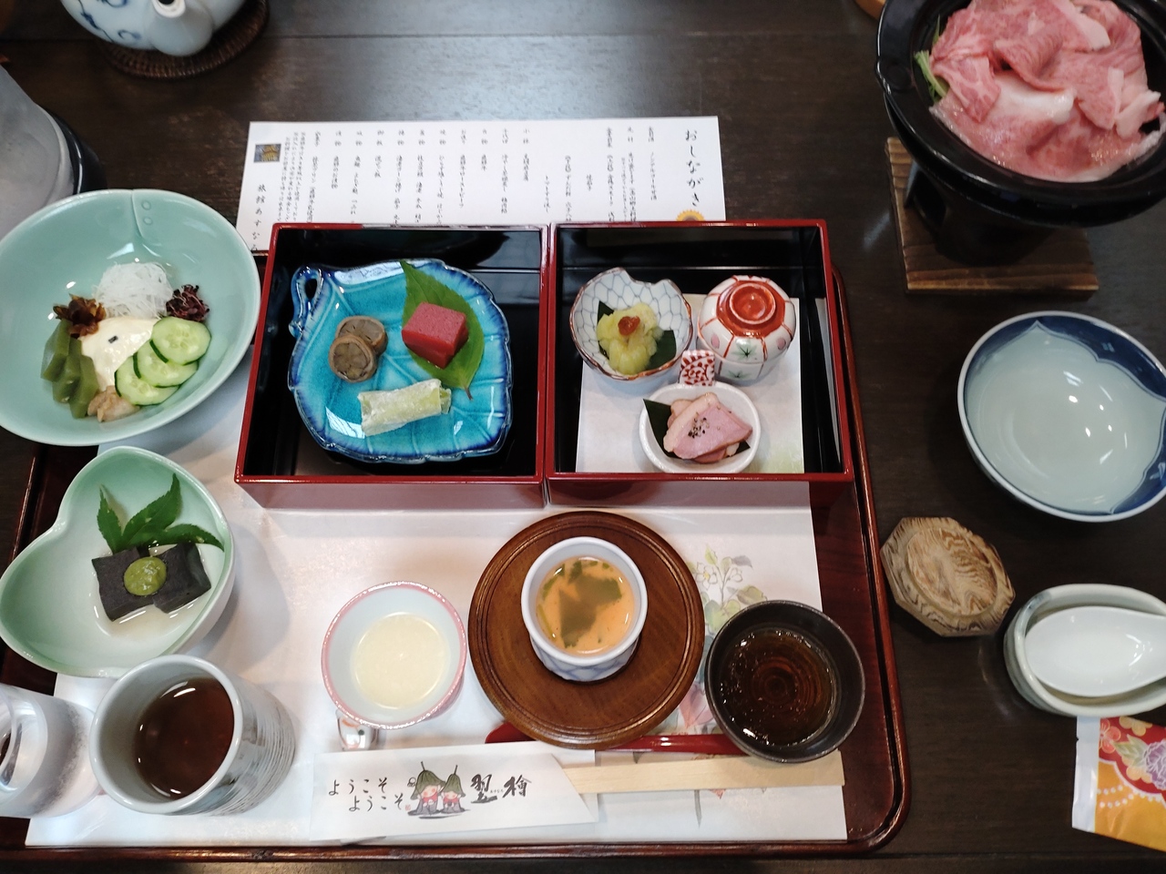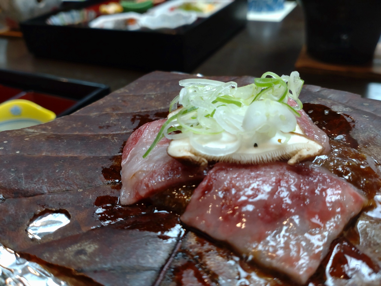 高山市内にある料理の美味しい旅館です。A4ランク以上の飛騨牛を使ったすき焼きやローストビーフを楽しめました。郷土料理の生け盛なますは気に入りました。