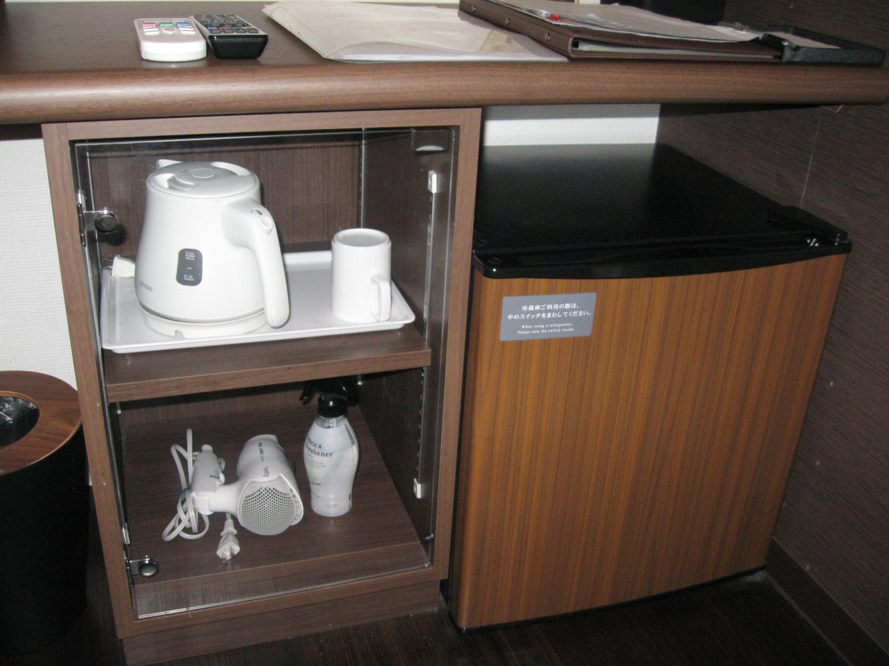 部屋にはテレビ・時計・ポット・ドライヤー・空気清浄機・冷蔵庫がありましたが、冷蔵庫は自分で中のツマミを回して作動させました。