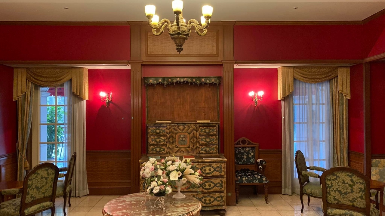 ヨーロピアンな雰囲気でフロント脇には調度品が揃った待合スペースもありました。