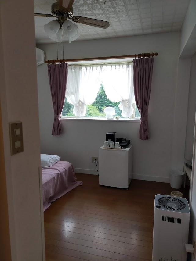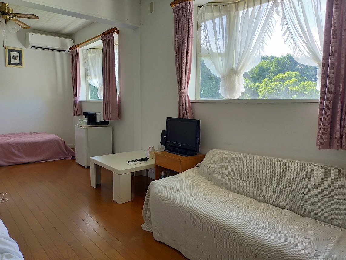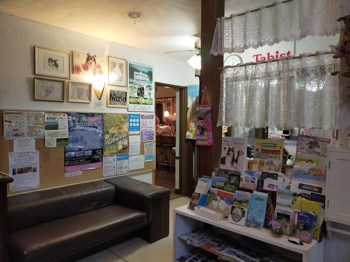 清里でペット連れOKな所を探していて比較的安いこちらに決めました。ペット連れ歓迎なお宿なので足拭きタオルやうんち入れBOXも用意されています。大きな看板犬くんはとても大人しくて可愛かったです。建物内や部屋は年季が入っていますが、ちゃんと管理されているので清潔感がありました。部屋のユニットバスは小さめなので体格の良い人は狭く感じるかもしれません。部屋には必要最低限の物は揃っていますが、ペット用品はないので全て持参になります。表通りから宿に行くまでの間は砂利で宿には整備された駐車場はありません(坂になってる私道?の両脇に路駐)素泊まりでしたが、車で少し移動すればお店はあったので困りませんでした。