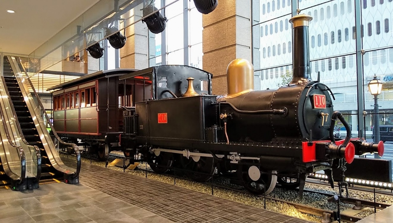 2020年オープンのまだ新しいホテルで、1階にはSLや「鉄道発祥の地」らしい鉄道関係の展示があり、宿泊しない方でも見学できます。