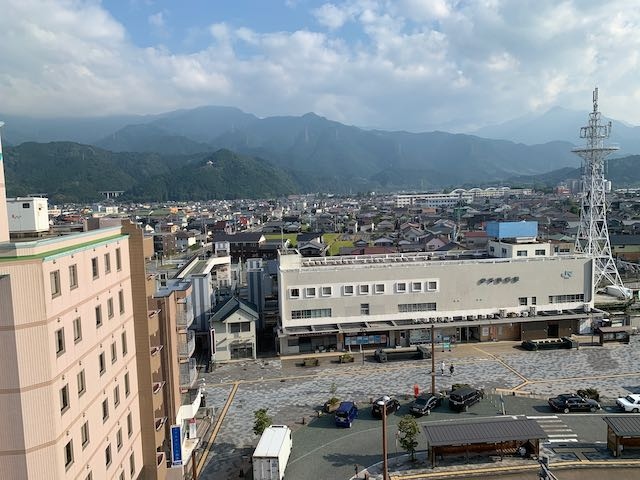 今回利用した部屋は駅と石鎚山が見えるサイドだったので、窓から両方を見ることができて景色を堪能できた。