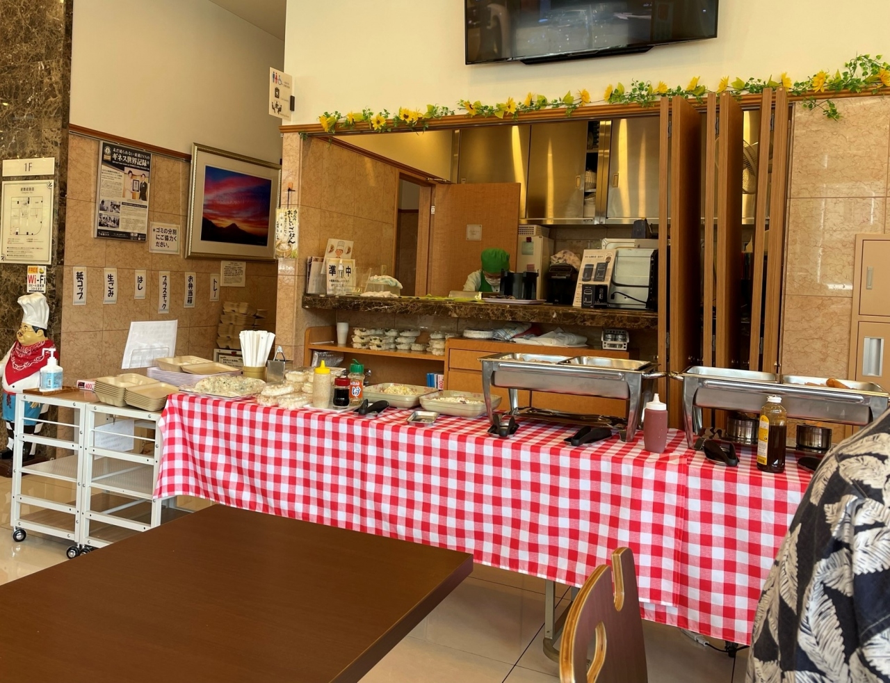 ロビーでの朝食も、無料のサービスとしては満足できる内容でした。