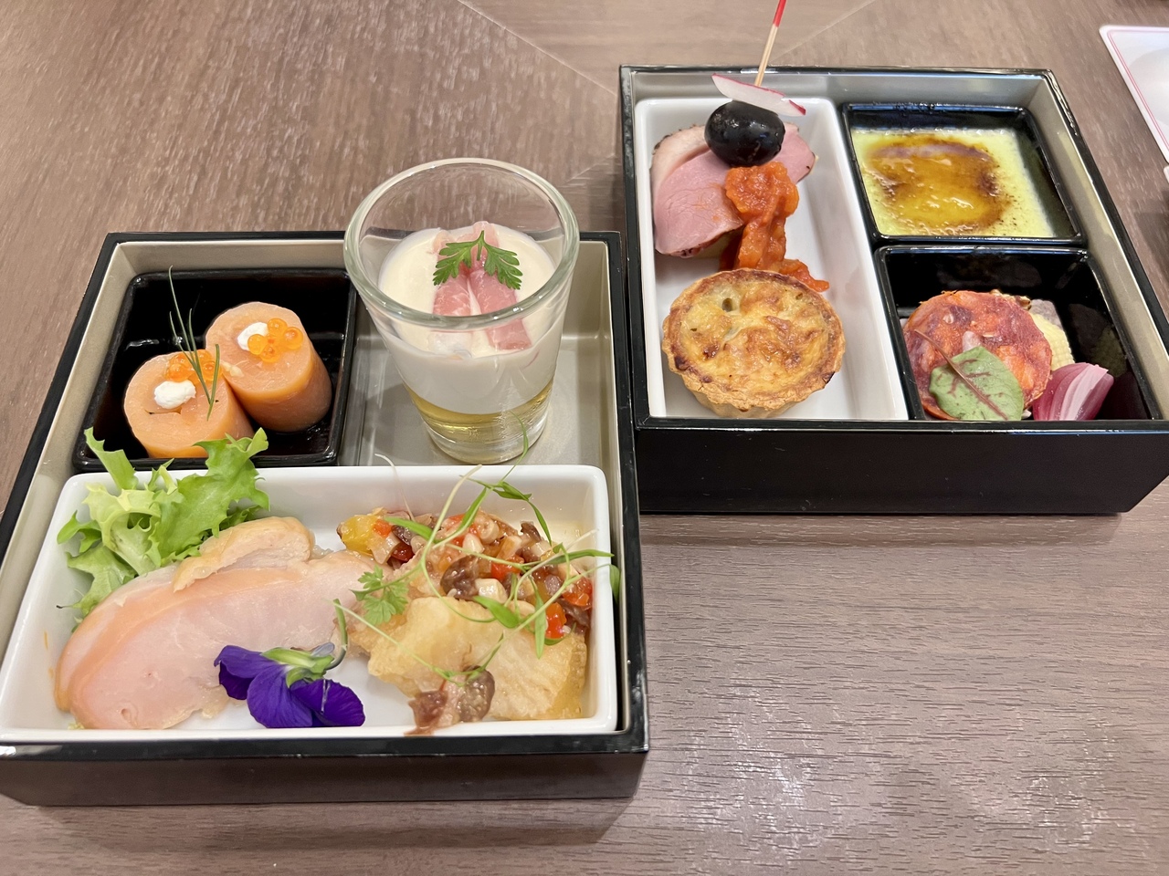 イブニングプレートの提供スタイルが変わり、重箱のような容器に入っていました。