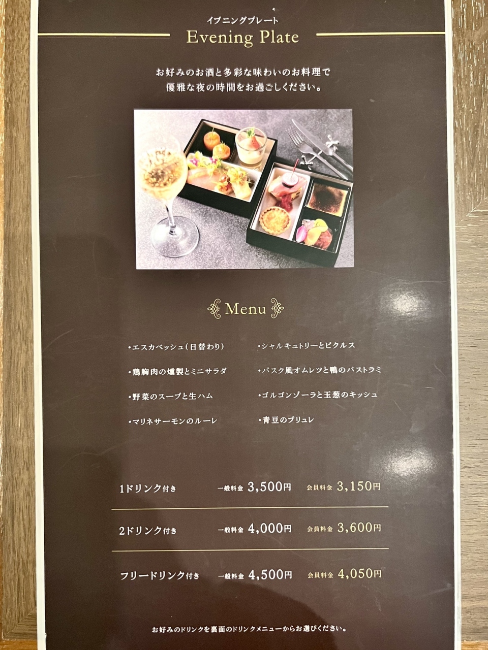 17時から提供されるイブニングプレートをいただきたくて、ホテルの公式ホームページからあらかじめ予約しました。