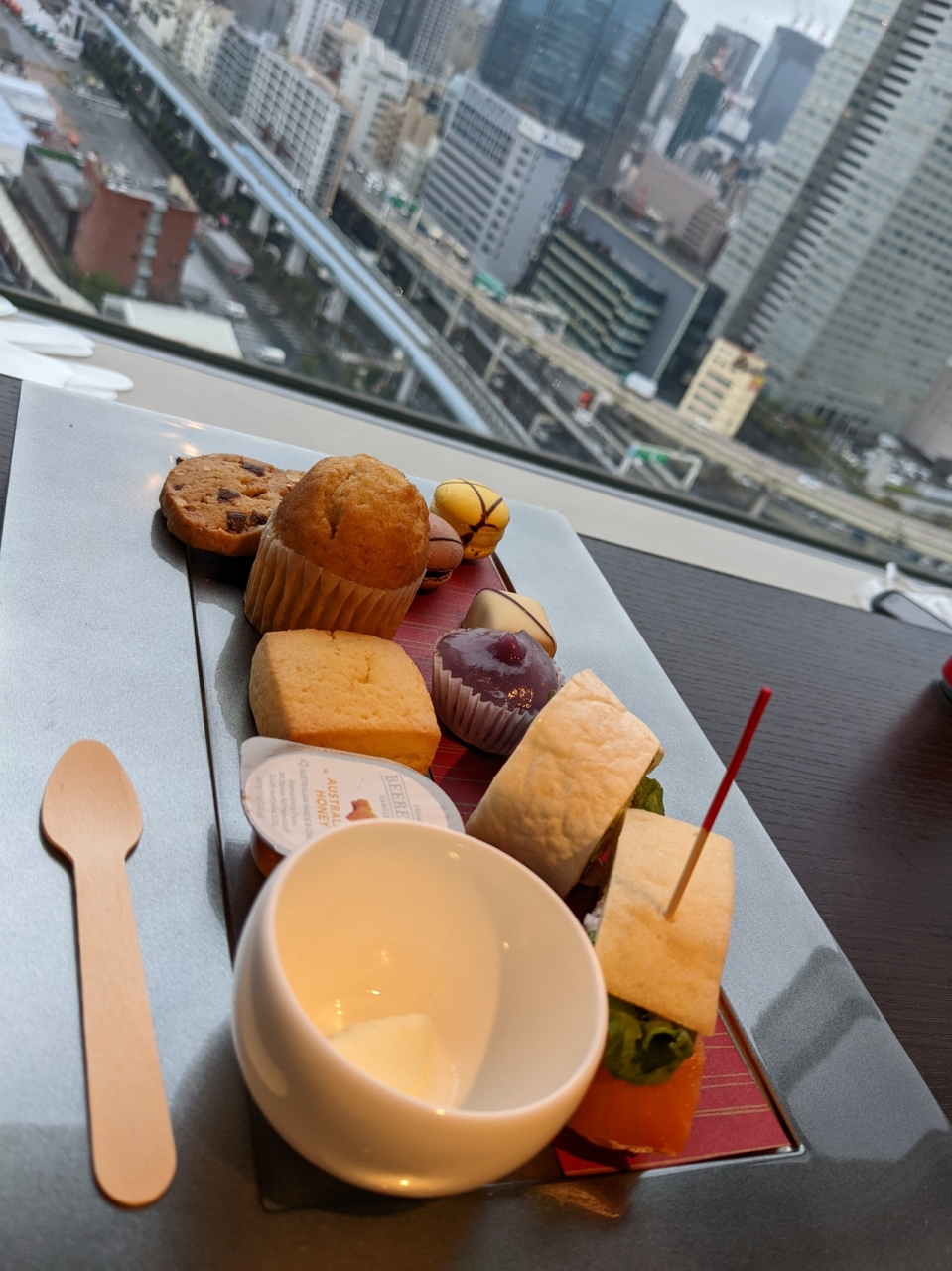 クラブフロアではラウンジでウェルカムスイーツと景色(残念ながら雨)を堪能し、お部屋へチェックイン。