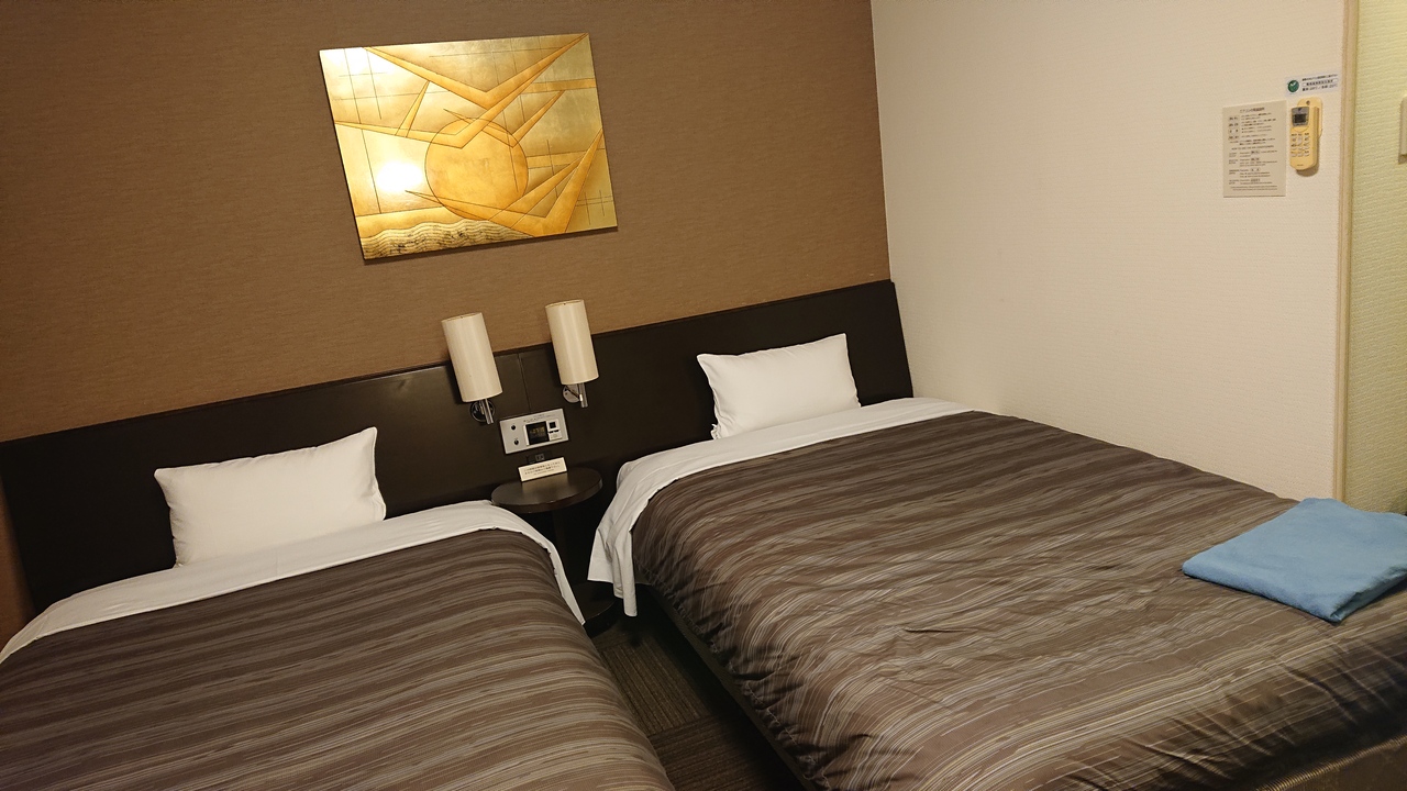 部屋は最上階の角部屋で、セミダブル2台の広めの部屋でした。
