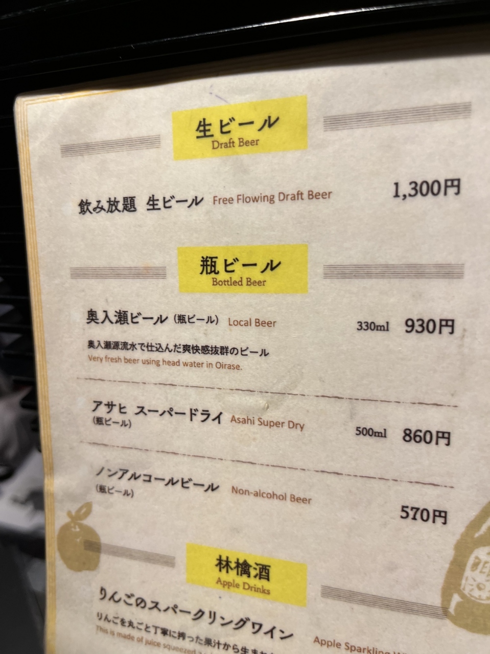 ビールだけの飲み放題は珍しいけど、ビールが好きなので嬉しい◎