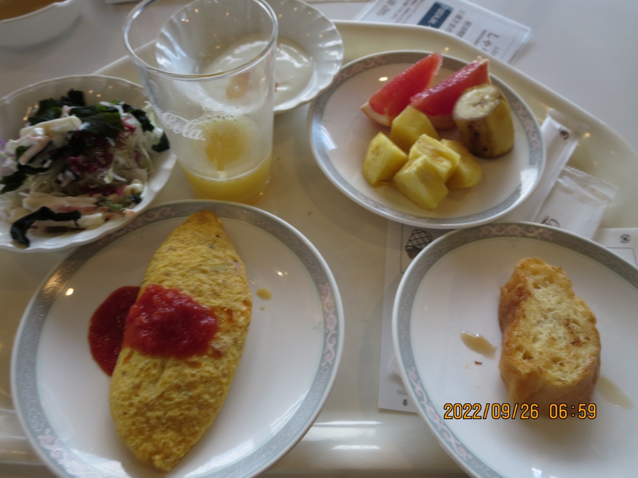 朝食のオムレツはとても上手に作る女性のシェフでした。トリュフ入りがあったので頼みましたが、さすがにトリュフは生ではなく、ペースト状のもの、それもほんの少ししか入れてもらえませんでしたが、ブランド卵そのものが美味しくて大満足でした。