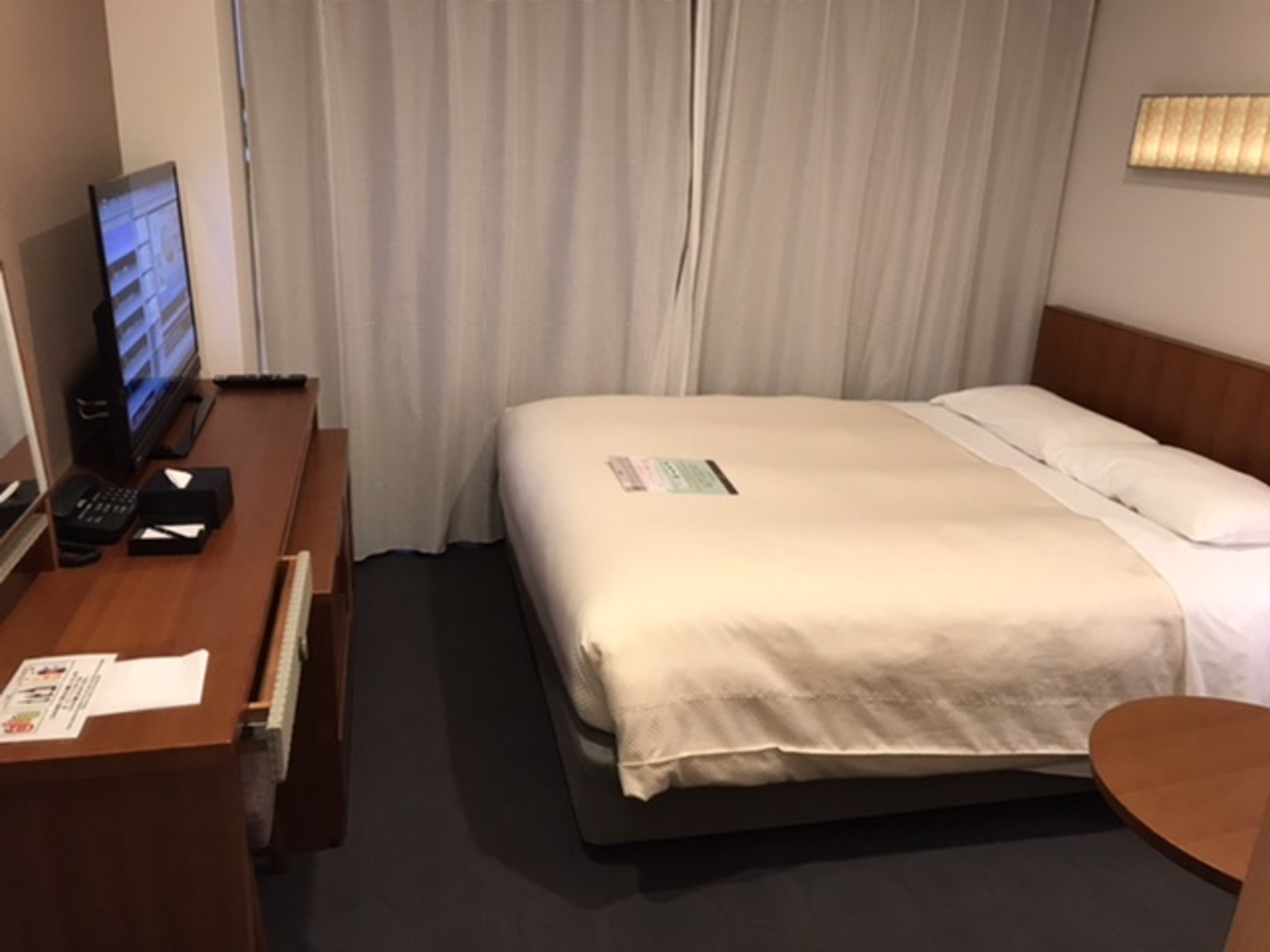 宿泊は北館のダブルルームでした。ベッド、ライティングデスク、テーブルとソファー、バストイレ洗面台セパレートと充実の部屋。