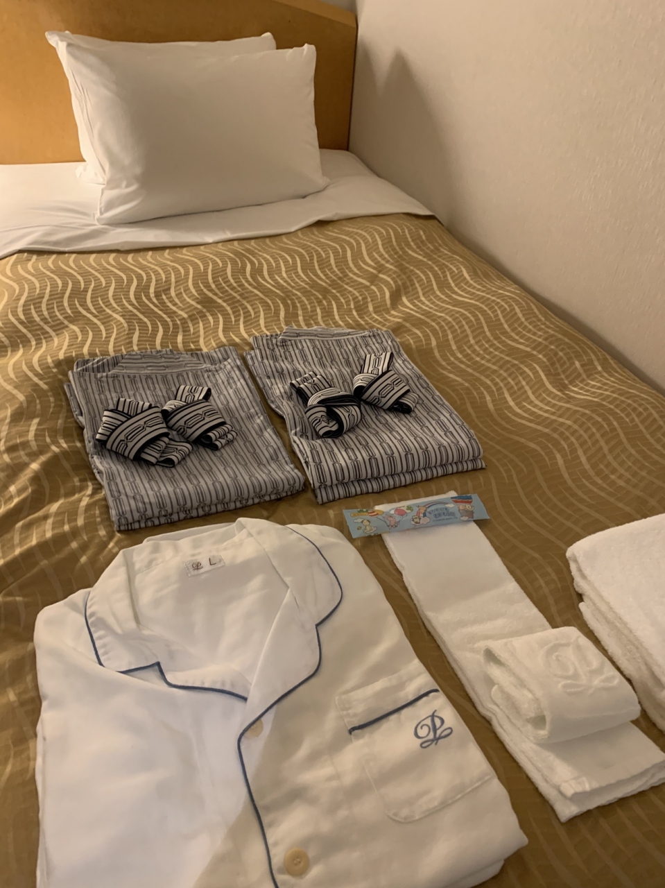 客室はコーナーツインルームでしたがベッド3つあっても荷物を広げるスペースが十分ありました。