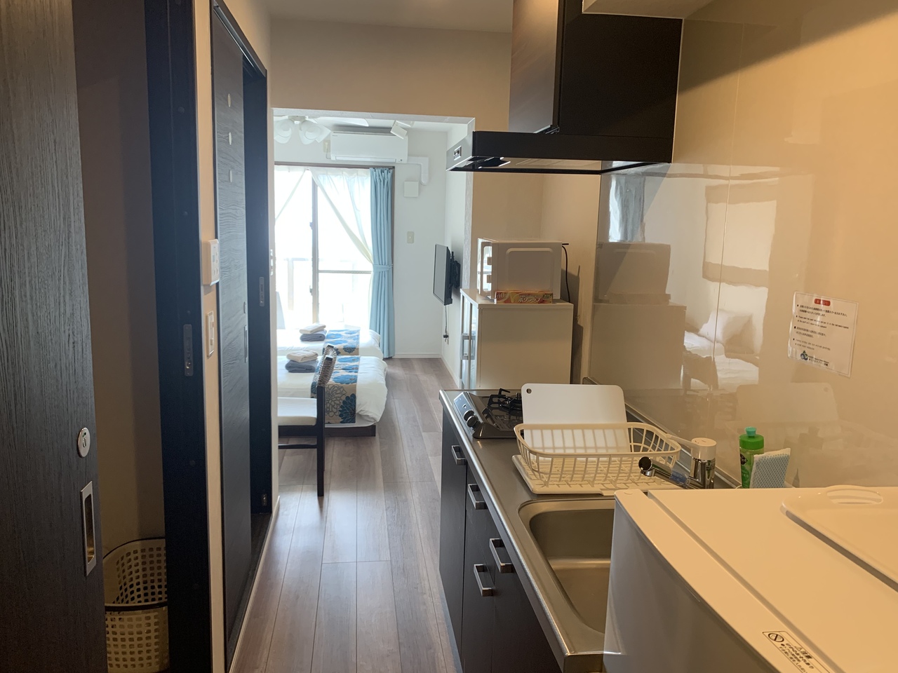 部屋はコンパクトな感じでしたが、おしゃれで清潔感があり快適に過ごせました。テレビや2ドア冷蔵庫、炊飯器、電気ポット、電子レンジ、洗濯乾燥機、エアコン、ドライヤーがありwifi環境も良かったです。