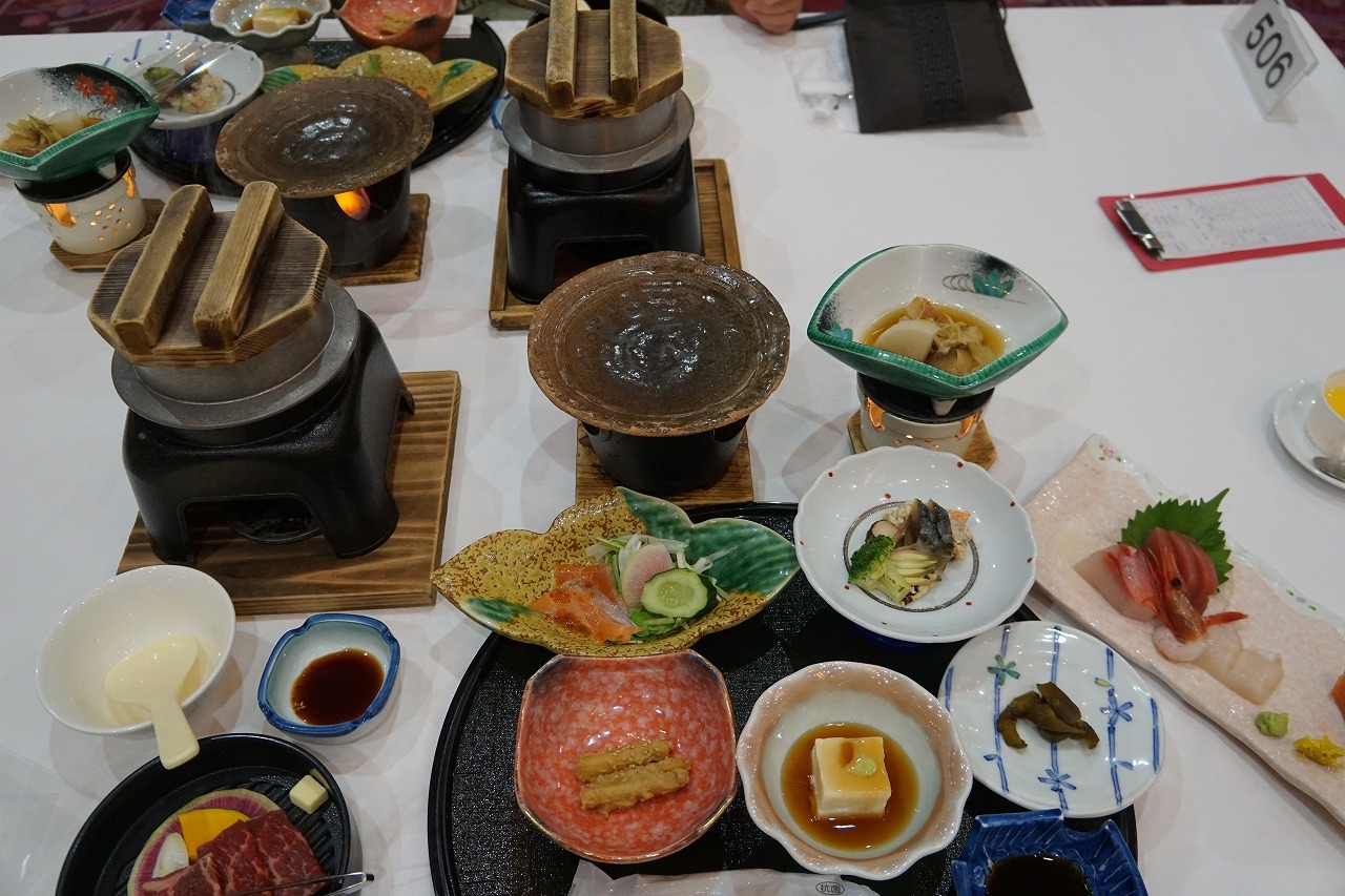 下北半島から津軽半島を巡るツアーで1泊しました。海岸線からはしばらく山の中を走ったスキー場の近くに馬門温泉はあります。近くには薬師堂があり、歴史のある温泉宿のようです。現在は現代的な李z-とホテルの建物に変わっていますが、大浴場は青森ヒバがふんだんに使われ、温泉の湯も気持ちよいですがヒバの香りも良いです。天気が良ければ露天風呂からは満天の星が見えると思います。客室は広めの12畳の和室で、奥にはイスとテーブルが置かれてあります。窓からは少し遠いですが、陸奥湾の海が見えます。夕日は望めませんが、朝日がきれいに見えました。部屋に冷蔵庫はありますが、飲み物は1階の売店か自動販売機になります。近隣にコンビニなど何もないので、必要がある場合は海岸線で買っておいた方が良いと思います。ツアーの夕食は1階の宴会場でした。テーブル席はかなり距離絵劣ってありました。セットの料理ですが、温かい料理はコンロに乗せてあるので熱いまま、冷たい料理は冷たいままに出されます。仲居さんの応対も良く、2人で食事していてもお吸い物は別々のタイミングで出していただけました。地酒も美味しかったです。残念なのは帆立の有名な場所にしては帆立がドンと出てくるような料理はありませんでした。朝食は地産のメニューもありました。