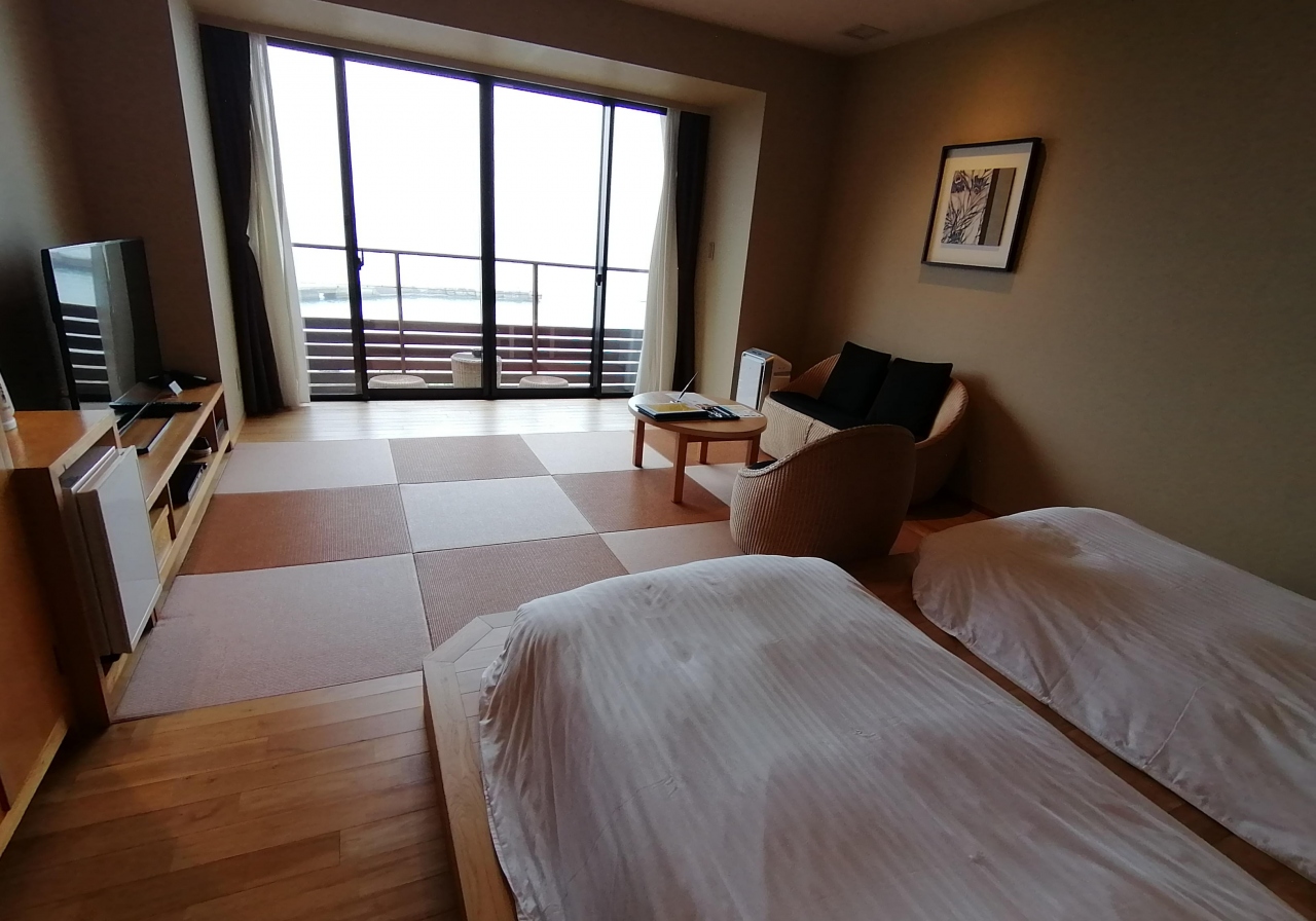 夏の終わり急遽こちらのホテルへ予約を入れました。最後の和洋室だったようですが、なかなか居心地の良いお部屋でした。宿のテラスがとても素敵なので長い時間海を眺めながらそこで過ごしました。スタッフさんはみな若く、外国の方がいっぱいいらしたのに驚きましたが、皆さん感じが良かったです。しっかりした社員教育をされていると感心しました。お食事も美味しかったです。