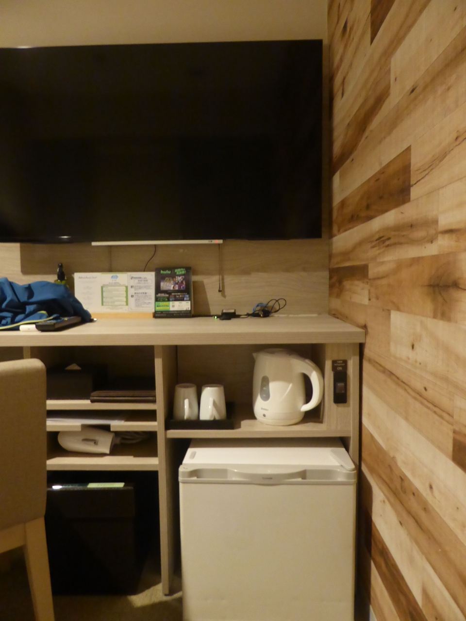 お部屋は、シングルタイプのお部屋に二人で泊まるので狭いのは仕方がありません。ただ、簡易用でもいいのでもう一つ椅子があると嬉しいですね。あと、冷蔵庫の温度調整が出来ず、ビールがあまり冷えません。