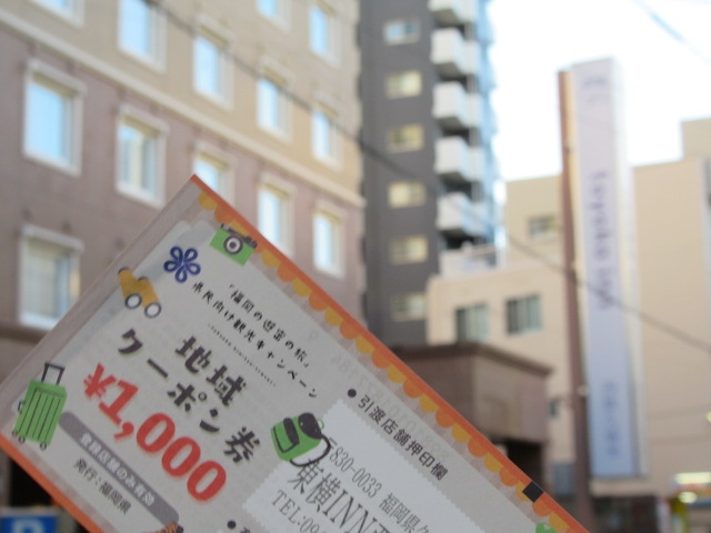 またまたここに宿泊です。今回は「全国旅行支援」で宿泊しました。「STAYNAVI」で事前申請し宿泊時には「接種証明書」「本人確認書類」を提示し宿泊費40%割引で3000円のクーポンゲットです。実質1000円以下の宿泊でしたよ、お得でしょう。男性2名のフロント対応は手際よくスムーズに対応していただきました。是非利用されてはいかがでしょうか。