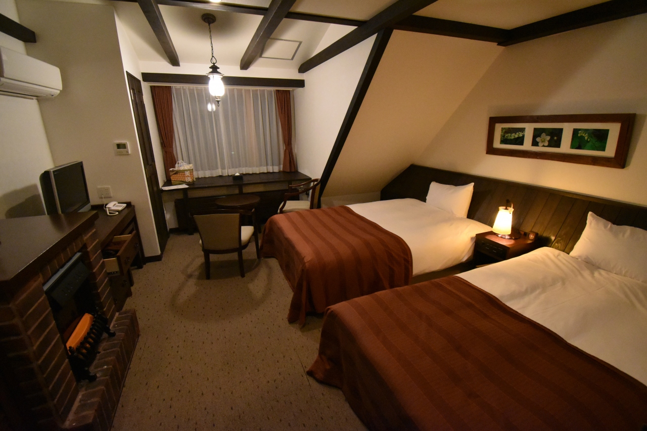 山荘をイメージしたホテルで部屋は数種類あるのでお好みの物を。