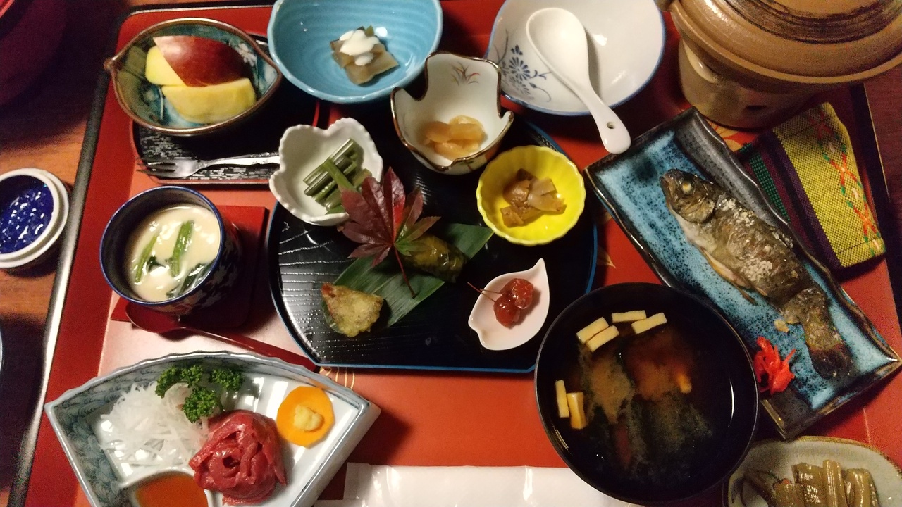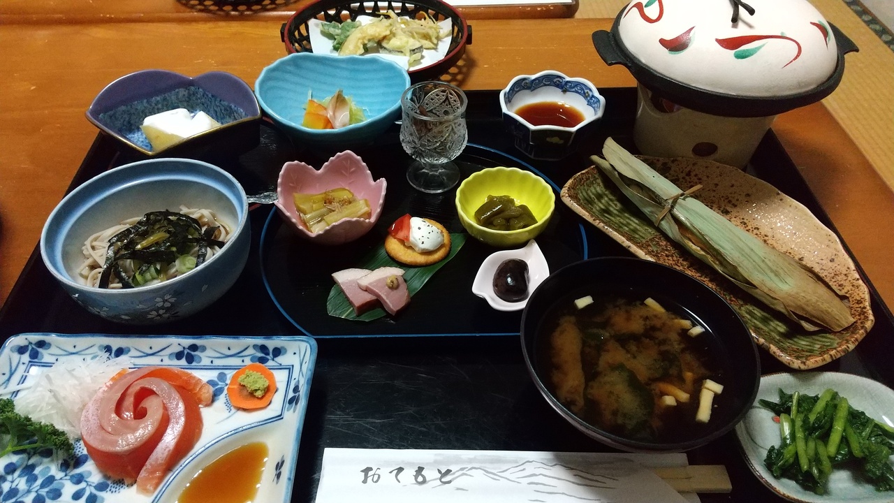 露天風呂は予約なしで空きがあれば何度でも利用できます。内風呂は好きな時間に予約をするようフロントに予約表が設置してありました。2泊しましたが夕朝食メニューの内容も変わり美味しい食事に感激。自家菜園で収穫された新鮮野菜や山の幸もとても美味しく、1つ1つが丁寧に作られているのがわかるお料理。朝食後には美味しいハーブティーまでいただけます。