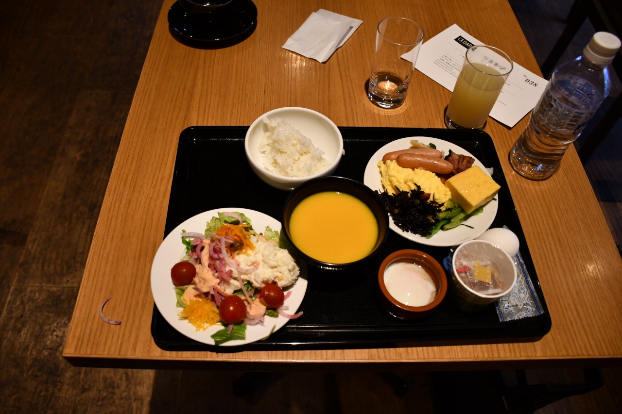 阪急阪神系列のお宿ですが、最大の難点は部屋に浴槽がないことでしょう。しかも洗面所や風呂場は部屋から丸見えです。幕を下ろすようになっていますが、斬新すぎて落ち着きません。朝ご飯は、品数としてもまずまずです。