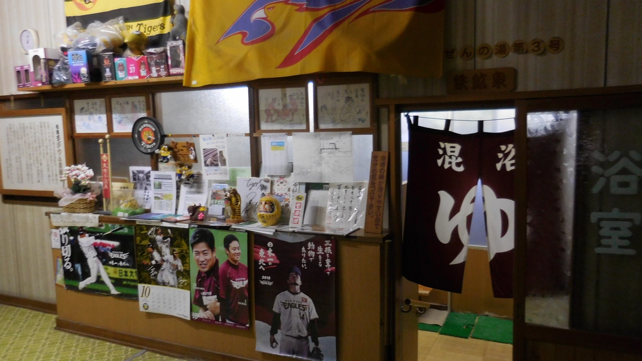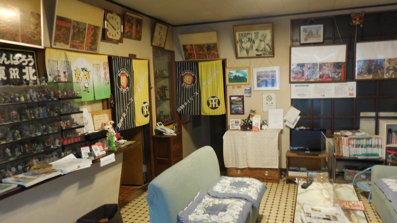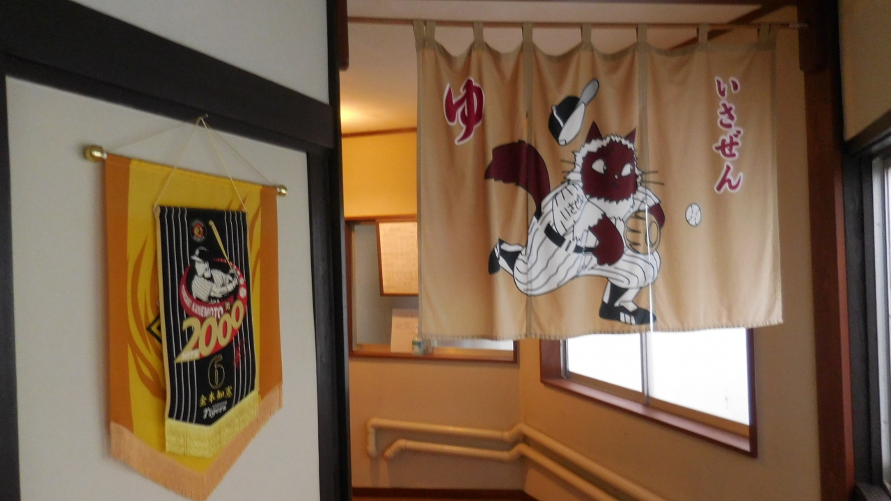 この宿の面白いのは館内に阪神タイガースのタテジマグッズが溢れていること。暖簾やポスターは勿論、洗い桶に腰掛、足ふきマットまでと徹底している。御主人に聞いたら東北にもタイガースファンが多いとのこと。関西人としてちょっと嬉しかった。