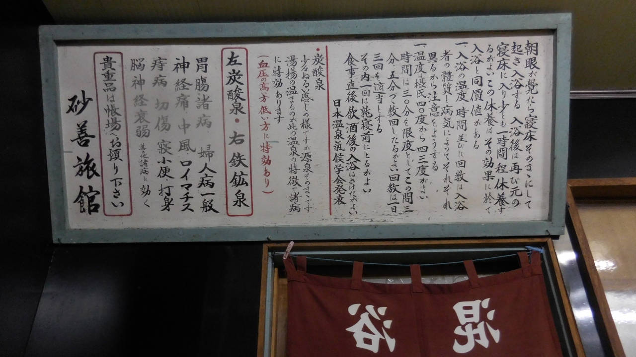 いさぜん旅館は陸羽東線の鳴子御殿湯駅からすぐ。小さな湯治旅館で立寄り湯で訪れた。自家源泉2種と旅館組合員7軒で管理している東鳴子重曹泉の合計3種類のお湯を楽しめる。