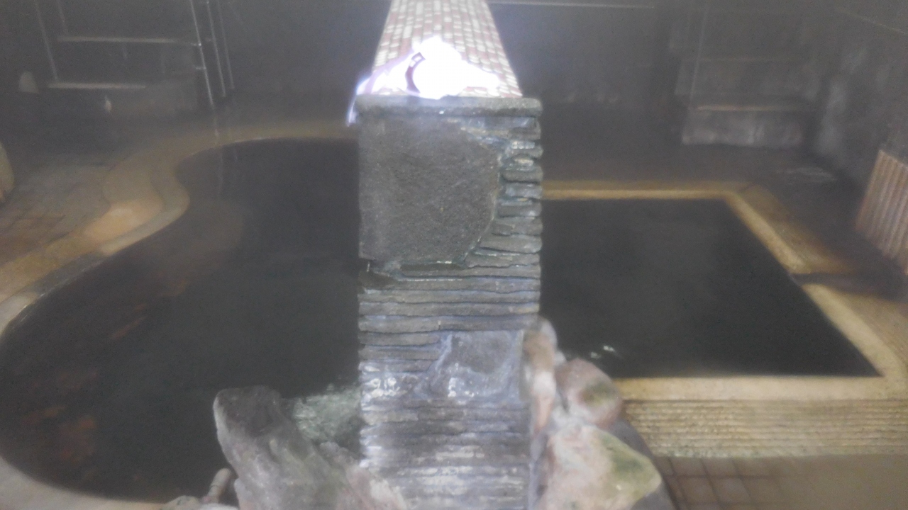 「いさぜんの湯」には炭酸泉と鉄鉱泉の2つの自家源泉の湯船があり、炭酸泉はウーロン茶のような色で微かに油臭で肌に細かな気泡が付く。ひょうたん型の鉄鉱泉は炭酸泉の後の「上がり湯」として入ると効果があるそそうだ。露天風呂を併設した中浴場は東鳴子重曹泉を使用している。こちらのお湯は見た目黒っぽいが、透明度は高く湯船は赤茶けている。入るとやや熱めでサラリ。微かにコールタールのような油臭。