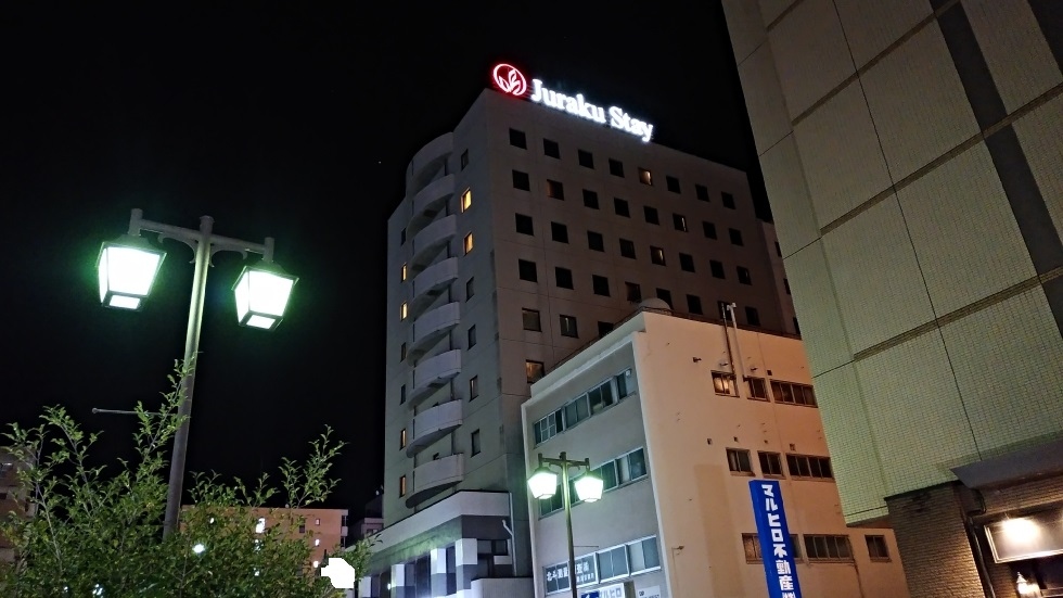 新潟駅万代口から徒歩5分くらいのところにあるホテル。周辺は飲食店などが入るビルも多く、夜間でも賑わいのある繁華街だった。コンビニも数件あったのでチェックイン前の買い物もできる立地だった。