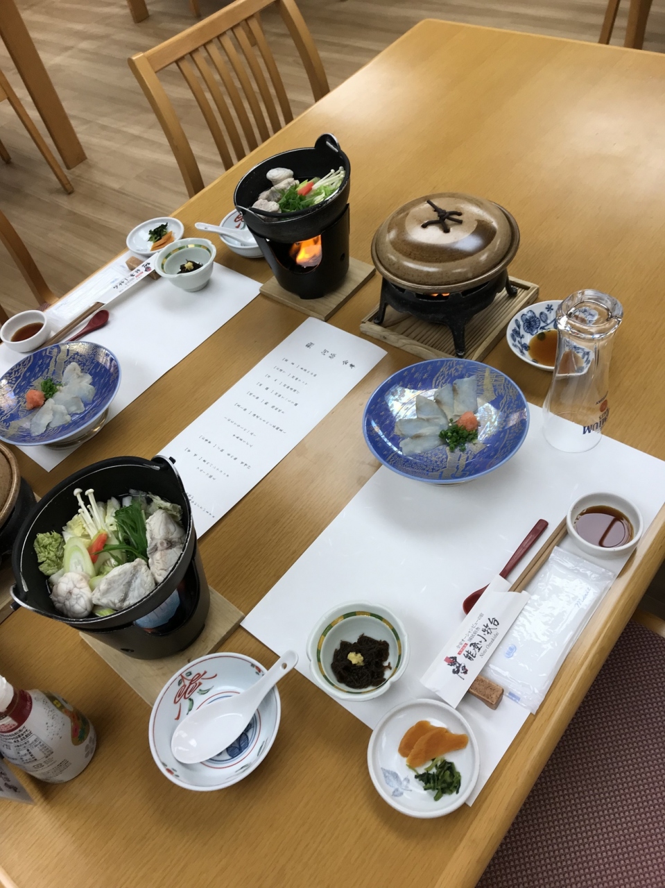夕食は鮑、河豚コース料理も美味しく、量もちょうど良かったです。