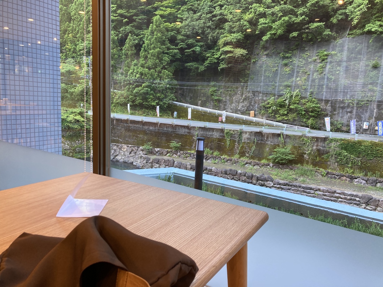 奈良中心部が2時間40分くらい。自然の多い山間部をドライブして到着。山深いところにあるお宿です。空気もぴんと張り詰めていて、新緑のかおりがしました。