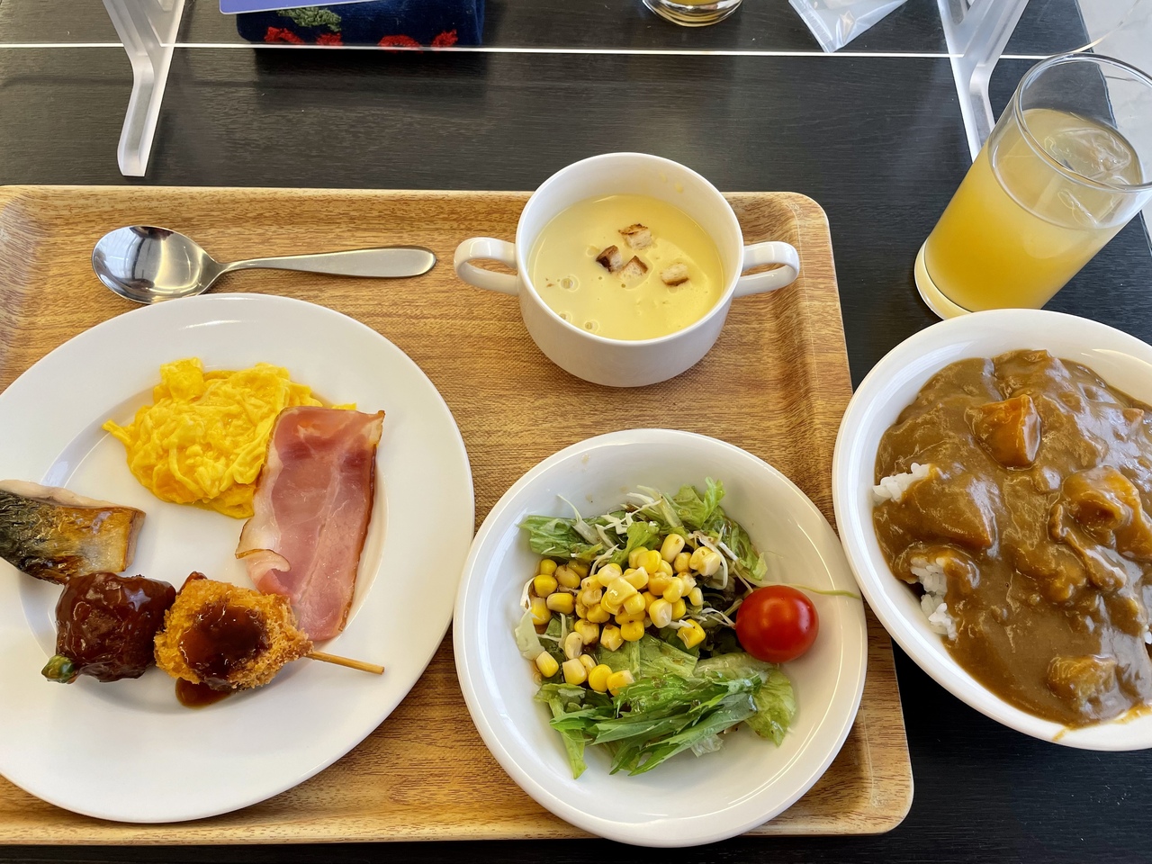 朝食のおかず類はIHヒーターで保温されてはいるがどれもぬるい。