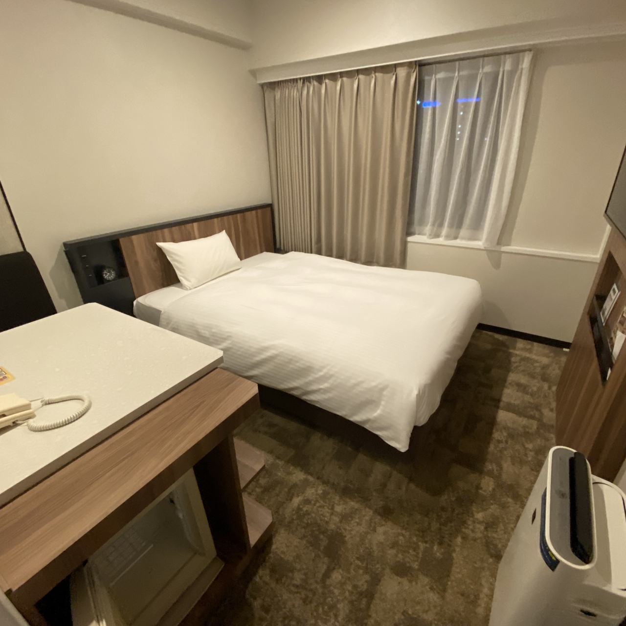 一泊で利用いたしました。駅からも近くて便利でわかりやすかったです。お部屋は、普通のビジネスホテルといった感じの広さでしたが、室内の明るさも良く、テーブルも大きかったのでよかったです。ベッドからテレビも見やすかったです。