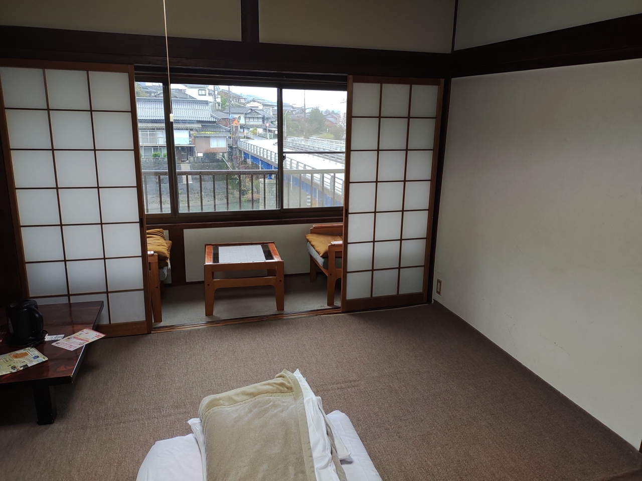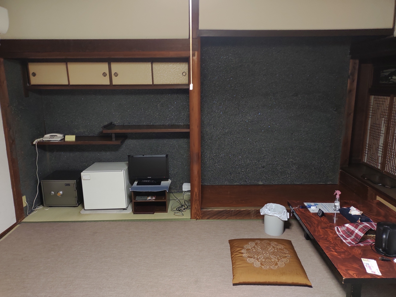 昭和時代のビジネス旅館のイメージです。和室には、バス・トイレだけでなく、洗面台もありません。アメニティは、歯ブラシのみです。廊下とのドアは薄く隙間があるため遮音はゼロで、話し声・歩く音が丸聞こえです。温泉を期待していたのですが、窓もない普通の風呂で、入浴時間も23:30迄、朝は6:30からと短いです。残念でした。