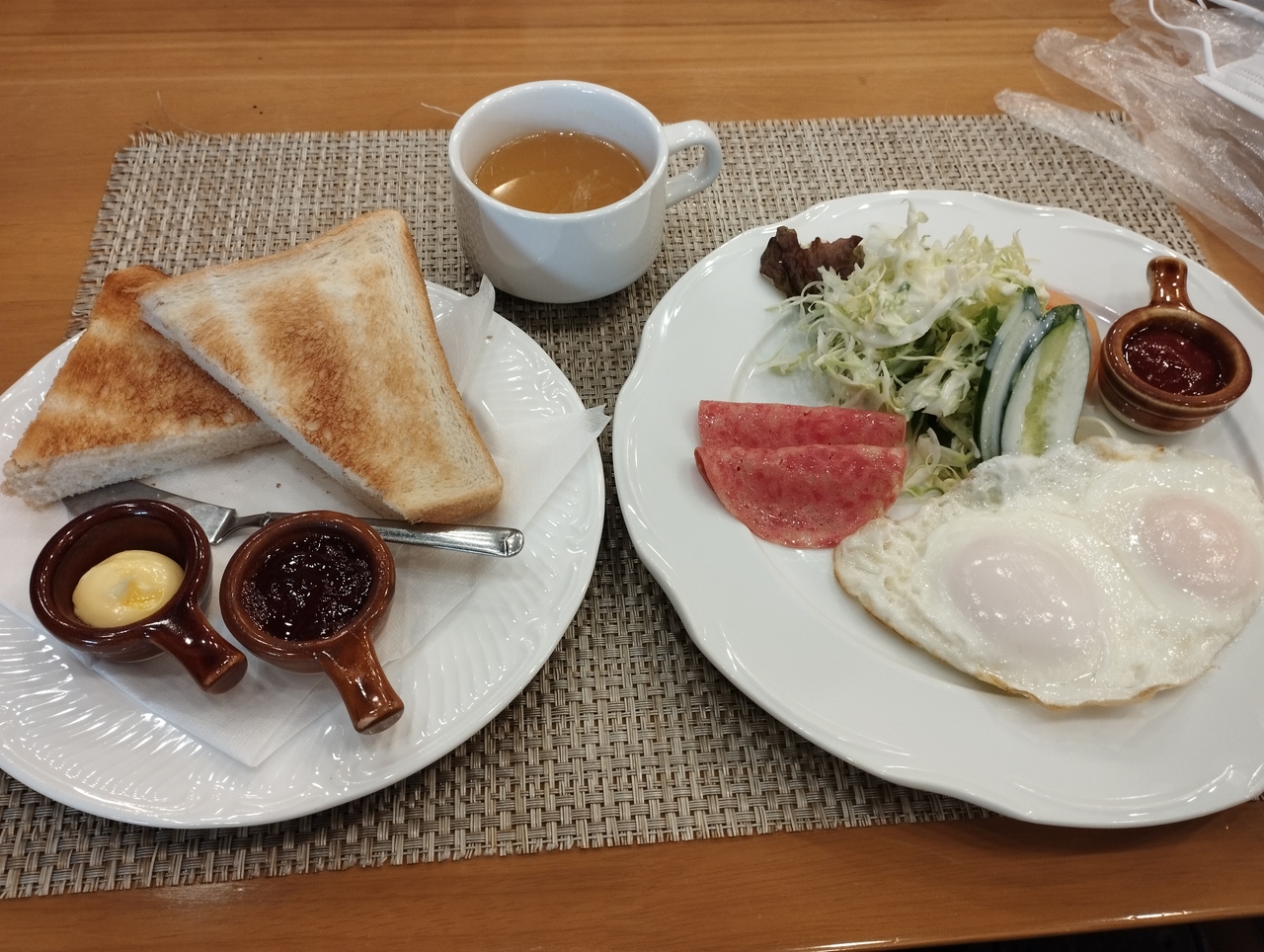朝食はチェックイン時に和食・目玉焼き・オムレツの3点からメインを選んで、その他はバイキング形式になっていました。