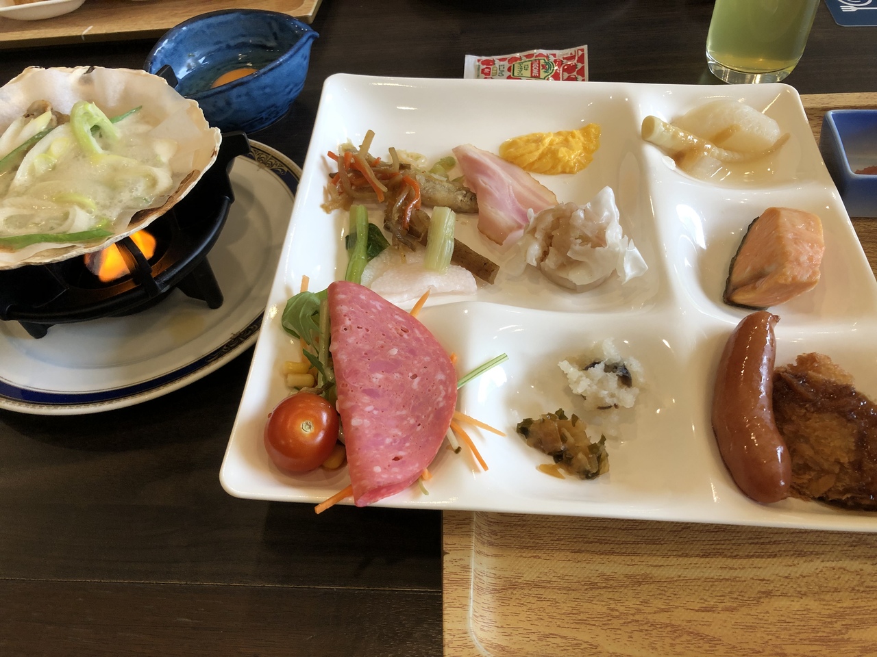 郷土料理の貝焼きもコンロでいただけて美味しかったです。