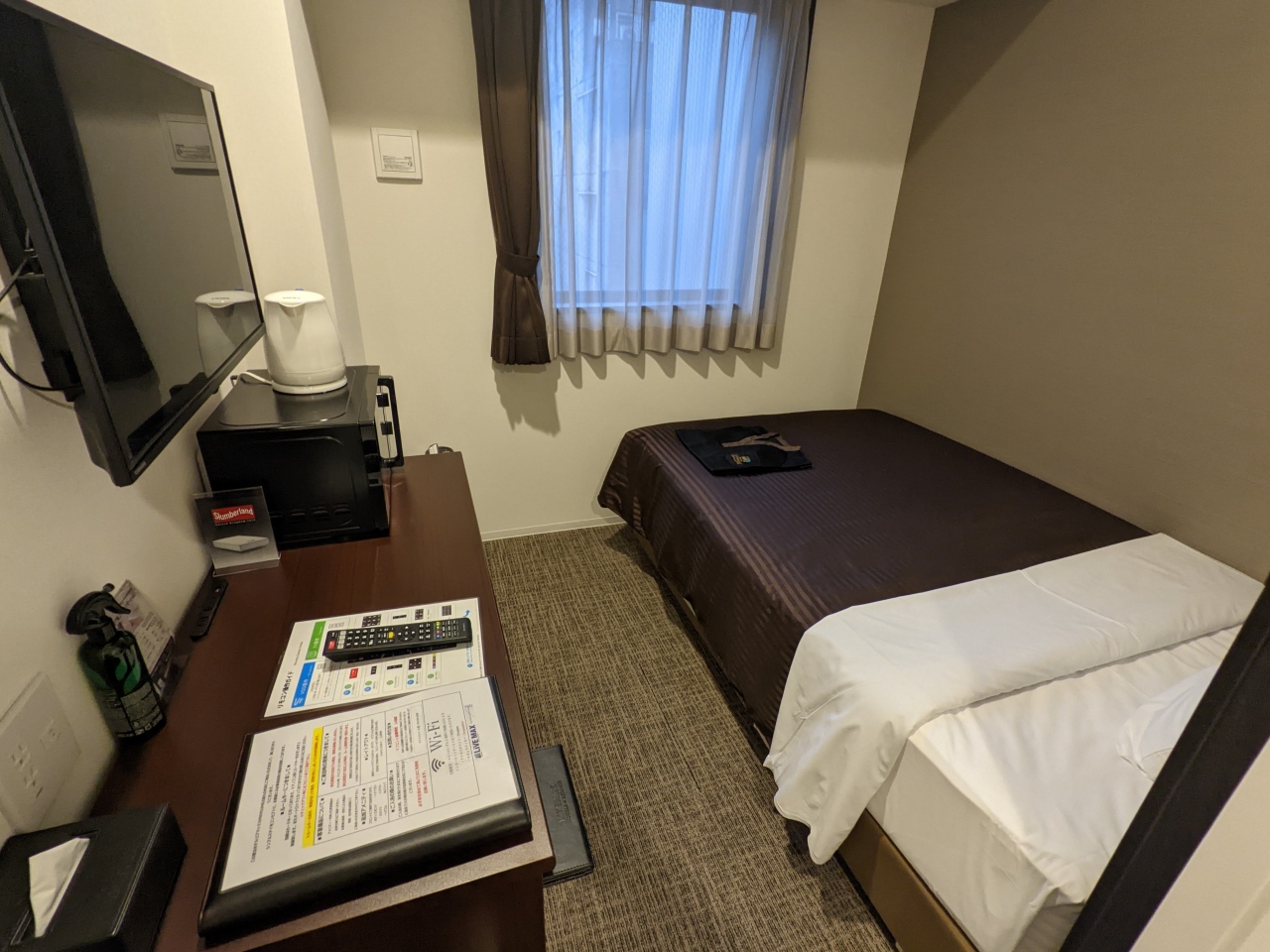ホテルリブマックスは一般的にはバジェットホテルにカテゴライズされますが、こちらはちょっとだけ上質なプレミアムタイプで、大浴場があります。土曜日の宿泊で、かつ全国旅割でホテル料金が高騰している中でもお得に泊まれました。繁華街にあってアクセスも良好でした。