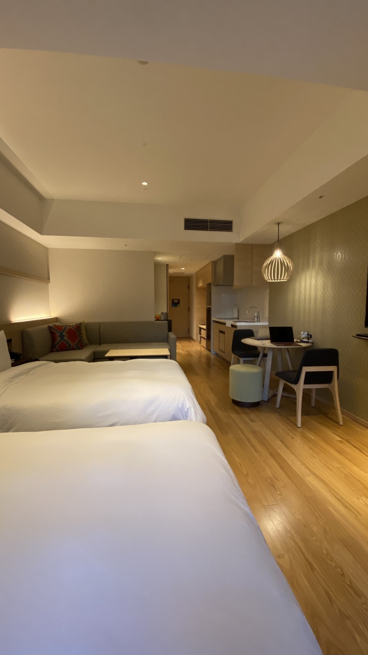 簡易キッチンがついているので、長期滞在にもいいホテルです。シンプルなインテリア、洗い場付きのバスルームは分譲マンションのようで、落ち着けます。水は最近多いウォータークーラーからどうぞ方式になっています。ランドリーはコインランドリー設置のせいか、下着や靴下の受付は不可でやや面倒。スーツやYシャツなども値段がかなり高いのでわたしは金沢駅のランドリーにだしていました。