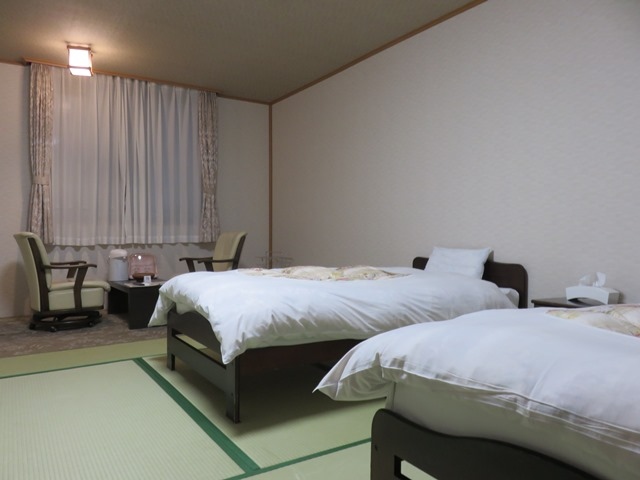 最低限のアニメティしかありませんが、お部屋のポットには健康茶、枕も健康枕、源泉かけ流しの温泉に、塩浴風呂や漢方風呂など4種類のお風呂が楽しめます