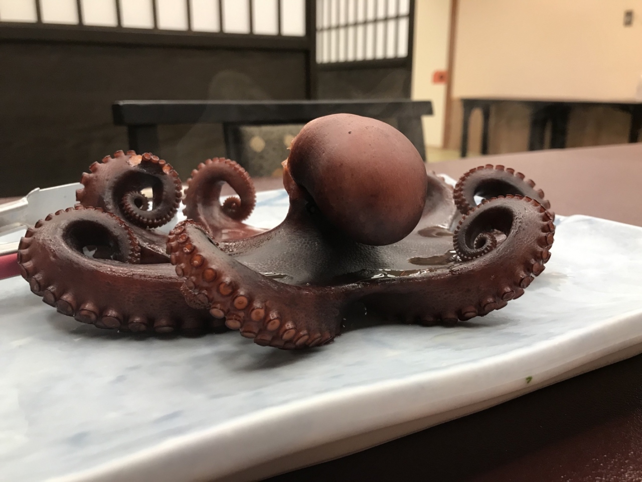 3月にしては珍しく台風並みの風雨がやってきて、楽しみにしていた夕陽を見ながら大浴場に入浴ができなかったのは残念ですが、夕食にタコを使ったお料理が目いっぱい出てきて、タコ好きの娘と私は大満足でした。