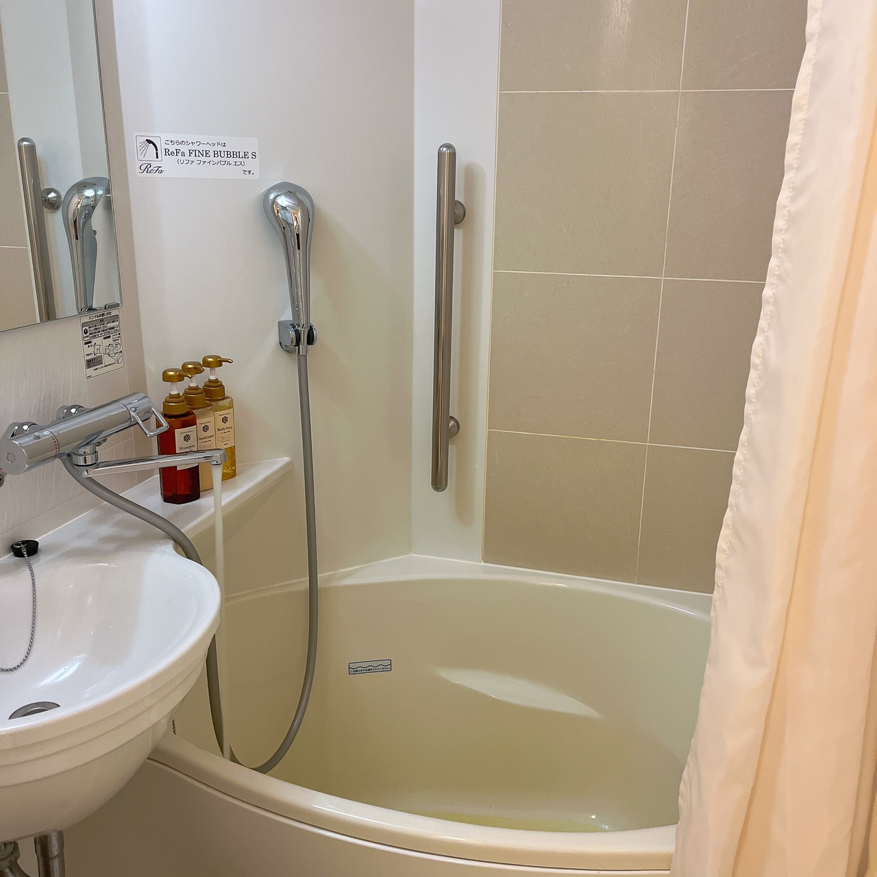 部屋はコンパクト。ユニットバスも綺麗ですが狭め。