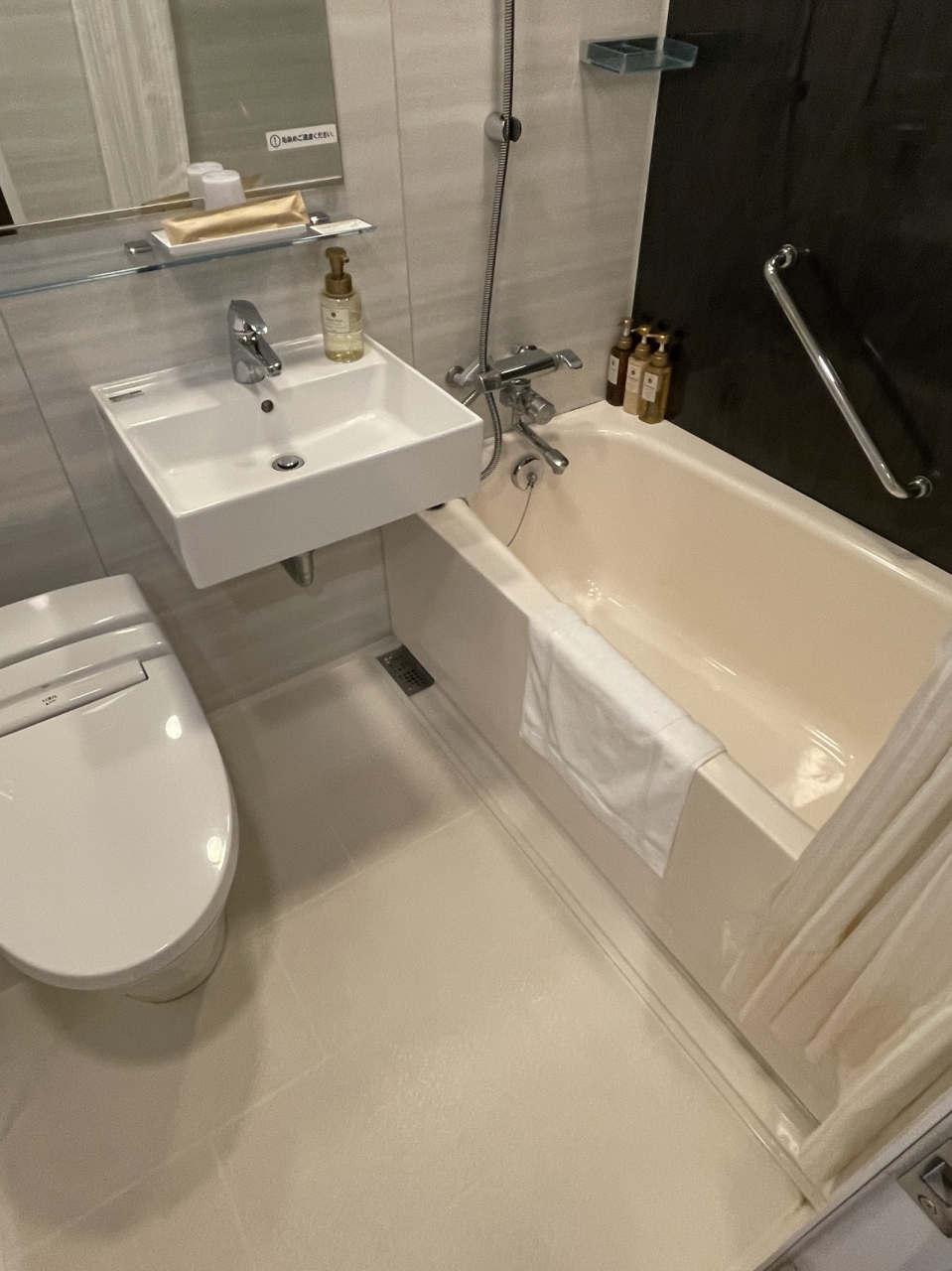 トキメクミナトク利用で5,000円引きで宿泊しました。最上階14階からは澄んだ秋の夜空に光り輝く東京タワーと高層オフィスビルが見えてよい光景でした。部屋にはドラム式洗濯機と電子レンジ、ポットが備えてあり浴室も一般的なビジホより広く快適に滞在できました。