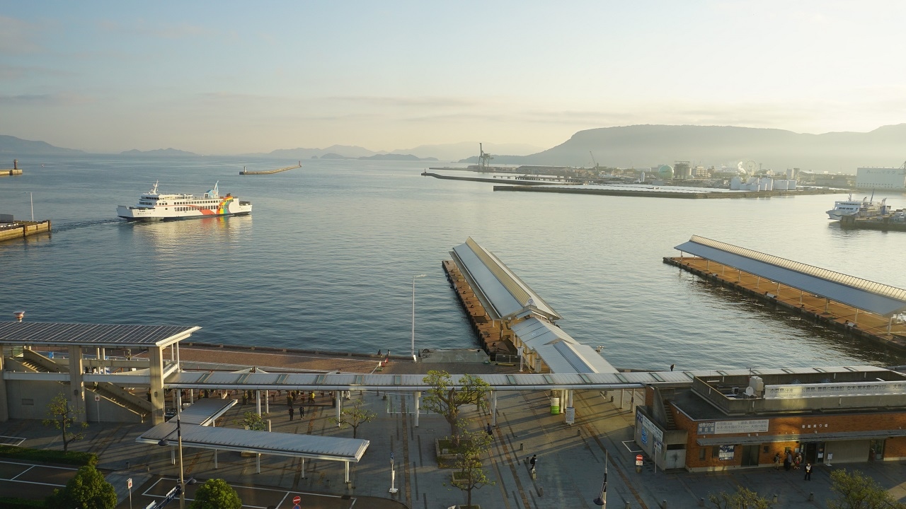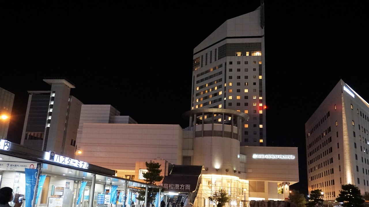 高松駅にも高松港にも近い最高の立地です。その上、高松空港行のバスも始発でした。