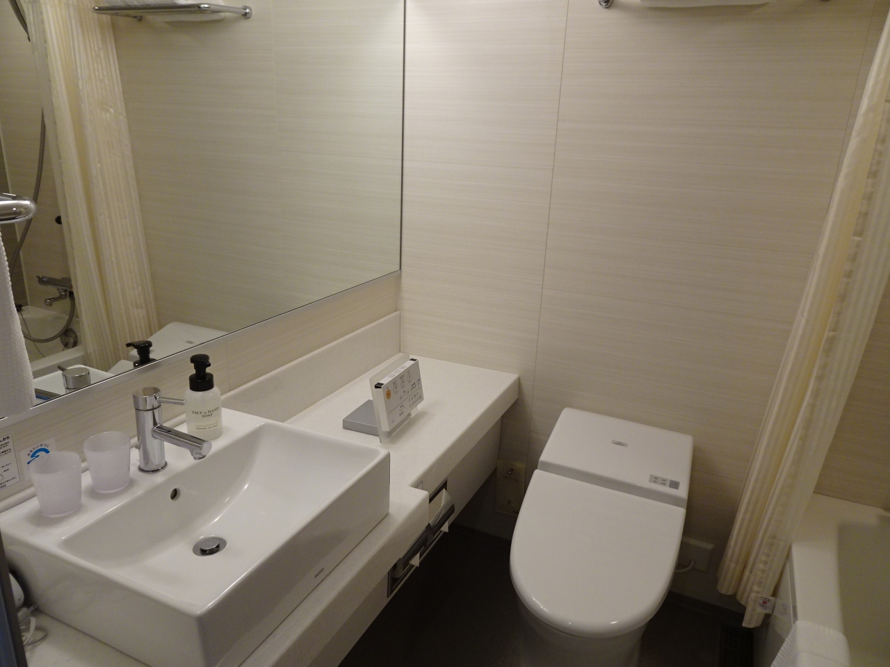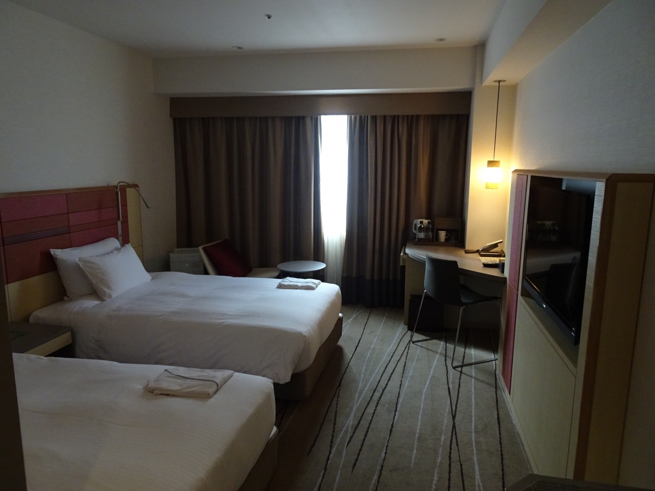新しくて清潔、客室に無料のペットボトルのミネラルウォーターもありました。ただテレビが小さくアナログボタンが付いている古臭いリモコンが残念でした。