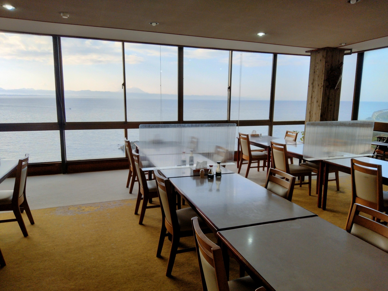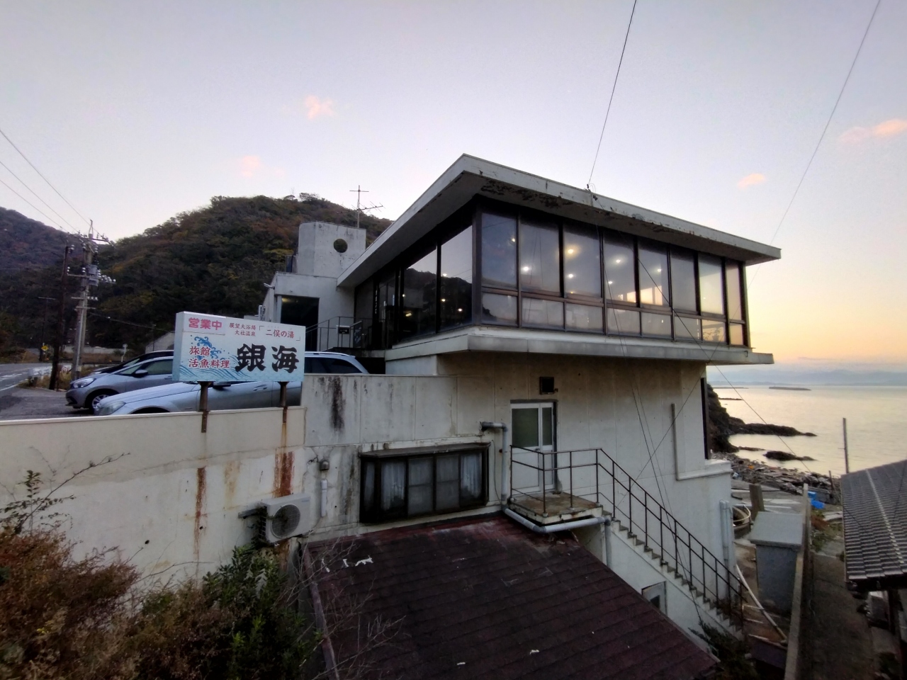 温泉もあり昔は宴会客なども利用した様ですが、今は日本海を望む風景と新鮮な魚介料理が売りの様でした。