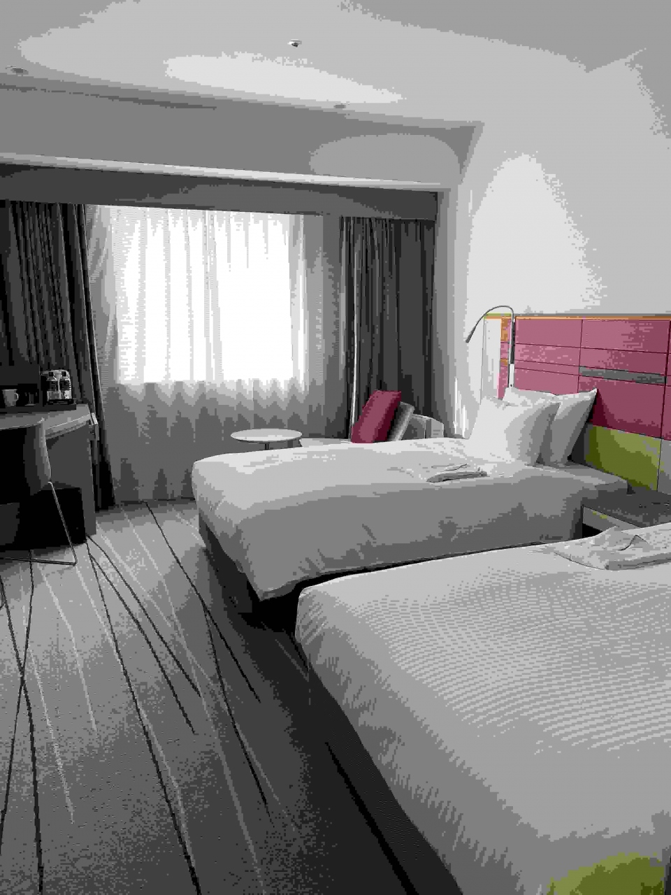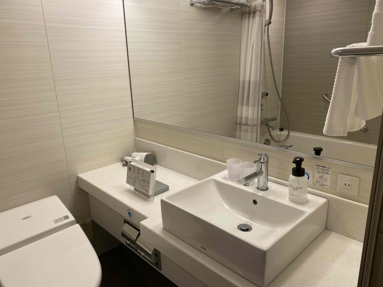 こちらのホテルに宿泊を決めたのは、立地の良さです。博多駅の目の前で、駅前の信号を渡れば階段等の段差もなくホテルまで到着できます。また、地下道の出入り口もホテルの近くにあるので、雨の日でもほぼ傘いらずと思います。駅周辺には飲食店もたくさんあるので、朝食をホテルでとらなかったので食事についてはコメントできません。ラーメン、水炊き、もつ鍋、カフェ、パン屋などなど周囲にたくさんあります。ツインのお部屋は広々としていて、バスルームのシャワーの角度が微調節できるのも良かったです。また、チェックイン少し前でも入室できて助かりました。今回は全国旅行支援を利用し航空券付きのパック旅行だったので宿泊代だけの料金は分かりませんが、十分満足のいく旅行となりました。
