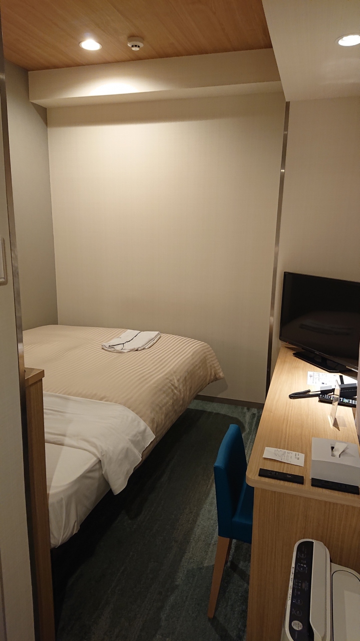 禁煙ダブルの部屋は、きれいで清潔。ベッドは寝心地よく、下に荷物が置けます、とのこと。(置かなかったけど)