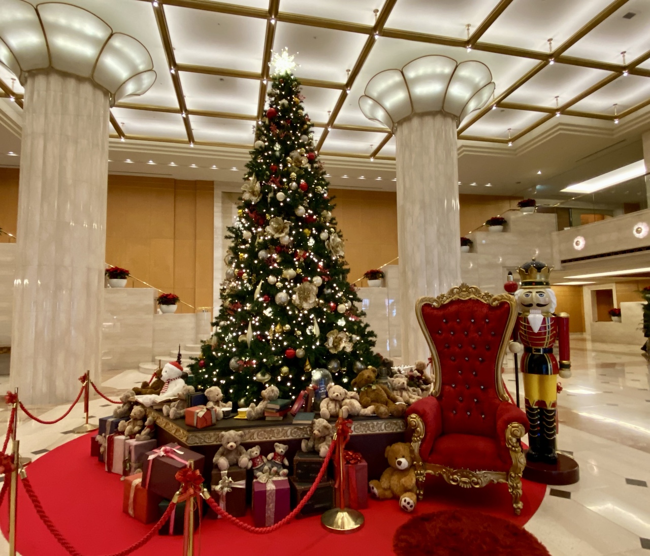 ロビーのクリスマスツリーが見事だと聞いたので、見に行きました。