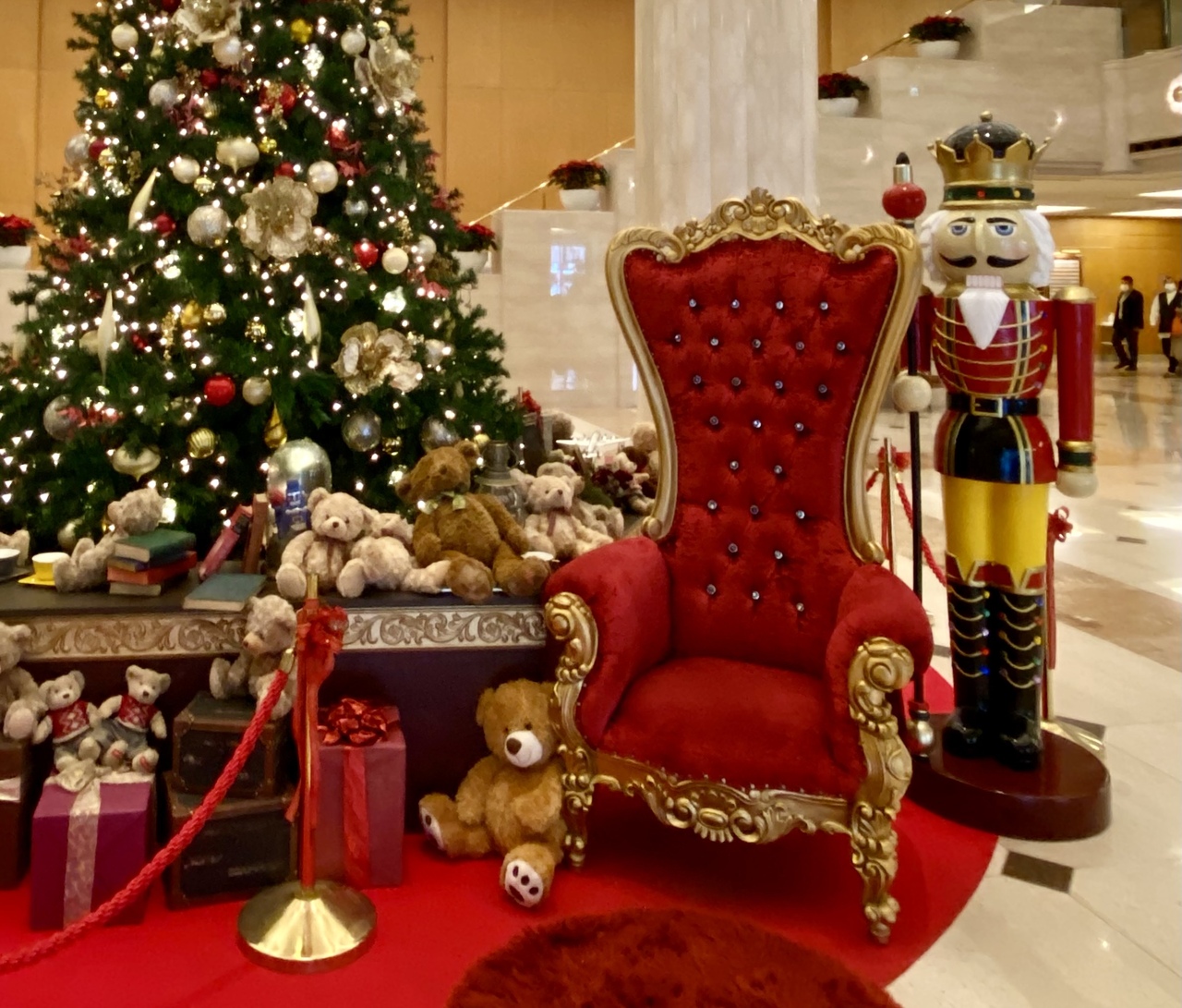 くるみ割り人形や豪華な赤い椅子も置かれフォトスポットにピッタリ。